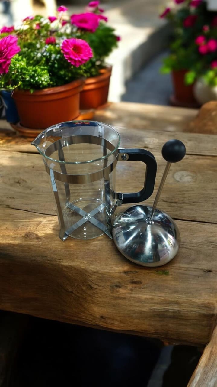 «Sentí el verdadero ritual del café con la Prensa Francesa 800ml de The Kitchen: el agua caliente se funde con tu molienda favorita y, al bajar el émbolo, el aroma intenso invade el ambiente. Su cuerpo de vidrio resistente al calor y el contorno de aluminio aportan firmeza y estilo, mientras el filtro permanente asegura un sabor puro, sin residuos. Con capacidad para varias tazas, es perfecta para compartir momentos entre amigos o disfrutar pausadamente durante el día. Su diseño transparente convierte cada preparación en un espectáculo simple y elegante, donde cada detalle se vive con los sentidos. Una pieza esencial en tu hogar, práctica, duradera y con una relación precio-calidad que conquista a cualquier amante del buen café.»