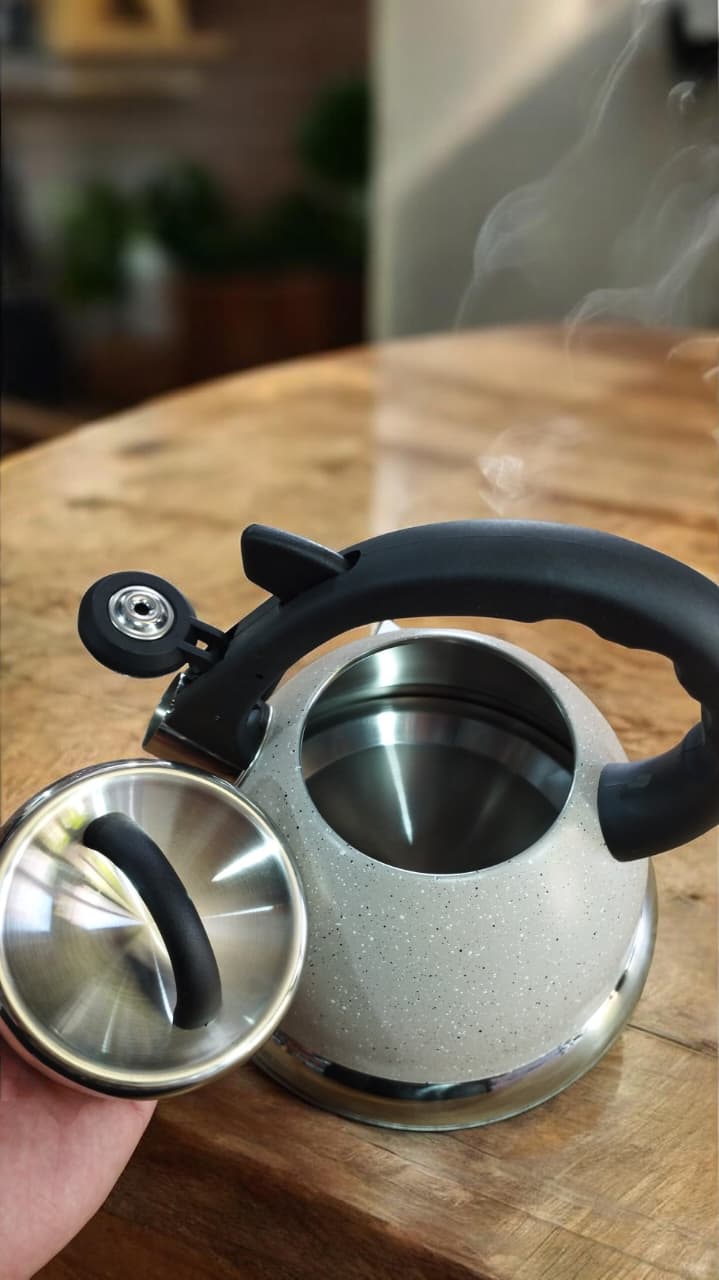 El silbido anuncia que el agua está lista, y con su mango ergonómico la servís con comodidad y seguridad. El acero inoxidable asegura un calentamiento rápido y parejo, cuidando el sabor y la temperatura, mientras que su diseño en color marrón aporta un toque cálido y sofisticado que viste tu cocina con estilo.