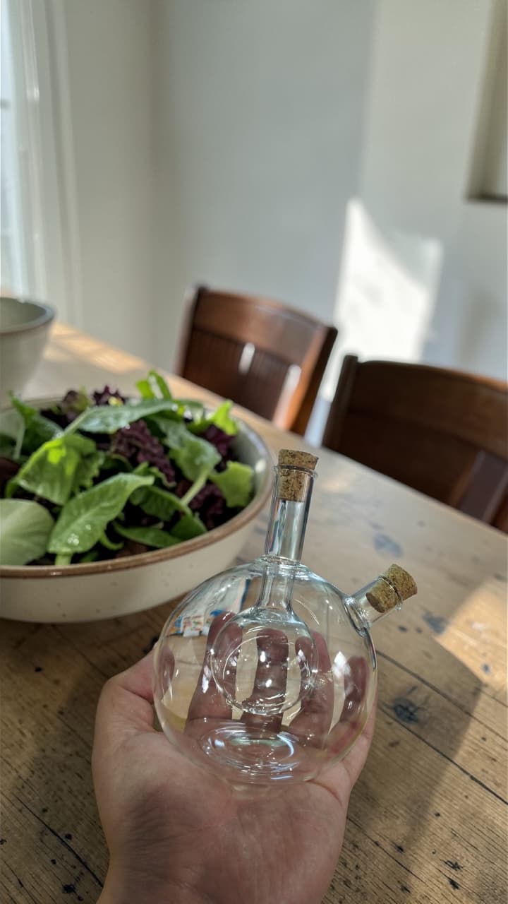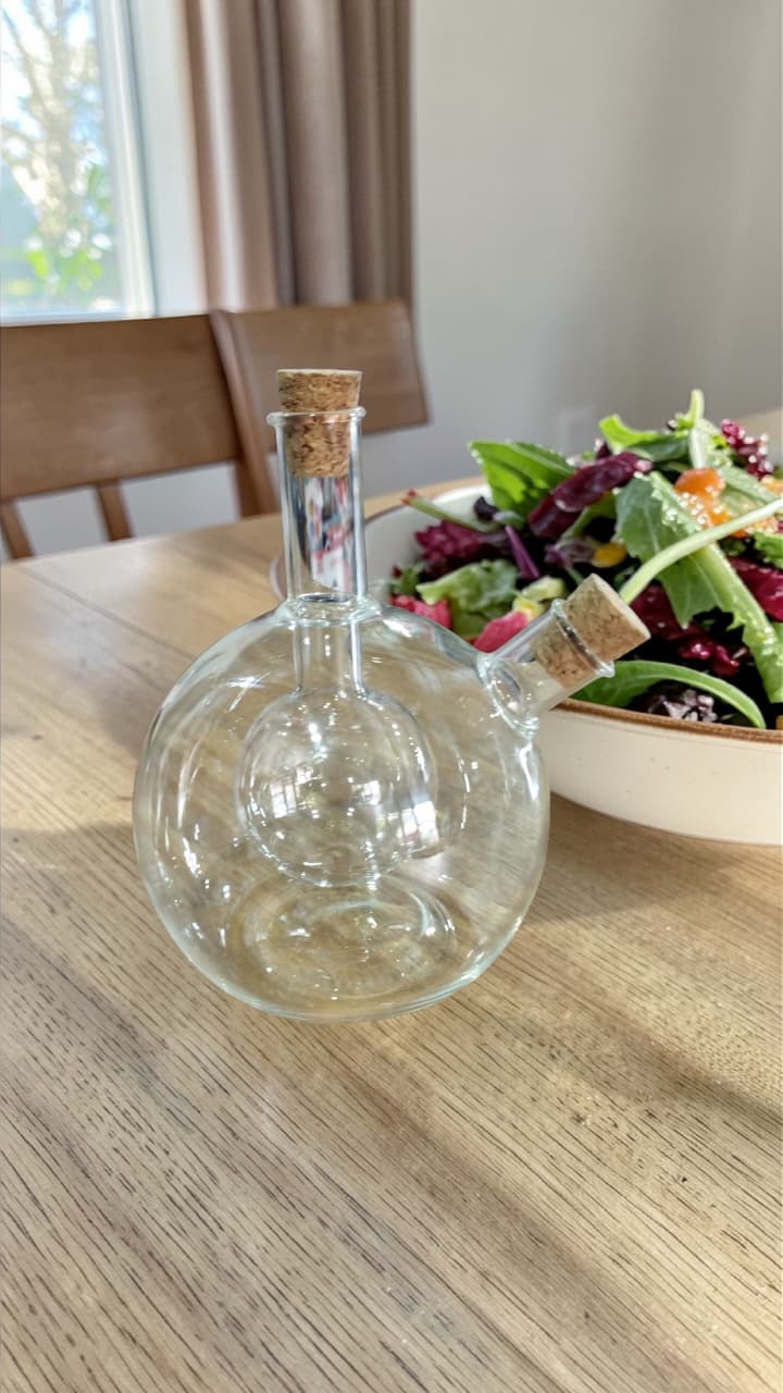 El toque final de cada plato merece elegancia. Esta aceitera vinagrera es como un pequeño ritual en tu mesa: el aceite que cae suave, el vinagre que equilibra, y vos jugando a ser chef en cada comida.Compacta, con ese aire moderno y la tapa de corcho que guarda los sabores como si fueran secretos bien cuidados. Es el detalle que convierte una ensalada común en un momento especial, y un almuerzo cotidiano en una experiencia gourmet. Porque cocinar no es solo mezclar ingredientes, es darle personalidad a cada bocado. Y esta aceitera vinagrera está hecha para que cada plato hable de vos.
